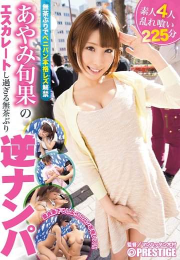 プレステージ専属女優『あやみ 旬果』が街で逆ナンパ! 弾けるような笑顔と持ち前の活発なテンションで、次々と声掛けてゲットした男性にフェラや本番の大サービス!秋葉原に移動したらメイド服に着替え、アンケートと称して声掛けて童貞君をゲット。美巨乳を吸わせたり、母性溢れるプレイは見逃せません!女性をゲットしたら本格的にレズに没頭!艶めかしいカラダを武器にエスカレートし過ぎる逆ナンパを繰り広げる!!