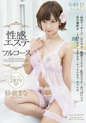 もしも紗倉まなが風俗嬢だったら!?回春マッサージにピンサロ、痴●イメクラ、乳首エステ、おっぱいパブにM性感で男の潮吹き!SMクラブにオナクラ、マットヘルス、デリヘル!夢のような体験を大ボリューム10コーナー240分でお届けします!風俗で本番行為禁止です!「ガマンできなかったことお店には内緒にしてくださいね・・・」