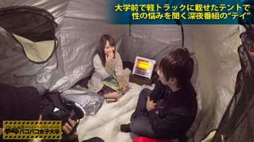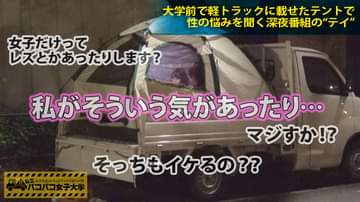 【初浮気!初顔射!】「私20分は挿れてて欲しいんです!」真面目なふりして超肉食系なロールキャベツ女子大生!ダメよダメダメはOKのサイン!?青●大好き⇒スリル大好き⇒テントは大大大好き!彼氏は2分セックスの申し子!愛撫無しのクソ早漏!⇒欲求不満で話してるだけでマ●コびっしょびしょ!の巻:私立パコパコ女子大学 女子大生とトラックテントで即ハメ旅 Report.028