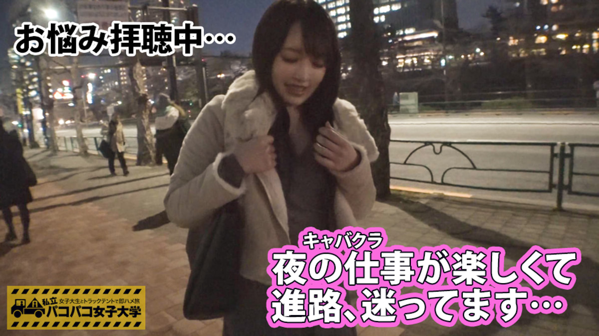 【歴代最大!Hカップ超乳JD】「私、胸が大きいんですよ♪」中2で実ったHカップ!⇒夜のお仕事で出会ったおじ様に開発されまくる⇒たまにはカチカチのおち○ちんで突かれたいと悩む⇒巨乳大好き弊社仕込みのおっぱい星人を召喚!⇒自慢のまんまる柔乳を揉みくちゃにされても笑って許してくれる女神対応!⇒ピストンの度に「激しくすると声が出ちゃう~」って大学の目の前でもお構いなしにイクイク大絶叫の巻!:私立パコパコ女子大学 女子大生とトラックテントで即ハメ旅 Report.043