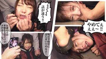 「●●でと言われたんでそのまま来ました」人気雑誌のモデルになれる~と期待感MAXでやってきたわんちゃん。一発で表紙狙えるぐらいのかわいさ、愛おしすぎる見た目です!本名がいちか。で、「いち」と、犬みたいだからという理由でわんちゃんと呼ばれてるんだって。なるほど~!「いつも読んでます」とノリノリなので、さっそくわんわんポーズをしてもらうことに。ちんちん咥えてますって言えよというとあれ? ダンマリ? は? 下ネタは言わない? 「しずく先輩どこですか?」。先輩に売られたことに気づいた?(笑)。泣きじゃくるわんちゃんを踏みつけ犬扱い。天井から手首を拘束。「怖い…、帰りたい…、彼氏に会いたい」と震えるわんちゃんにディルド差し出し! 拒みながらもカラダは感じてるようで、カメラ目線で「入ってます」と言いながらディルドを膣奥にずっぽり。さらに電マで乳首と同時責め! 「やめて…」と言ってもイクまでやめないよ。手マンでガチイキさせたあとは、腰を引き寄せバックでデカチンが絡みまくりで、キャンキャン喘ぐメス犬にキャラ変。すっごくモチモチしたマンコの感触は想像以上です! 申し分ないです! 「中出しはやめて」と叫ぶので、「やめてほしけりゃ、お前より可愛い子を呼べよ」というと、夜にも関わらず後輩の日向子ちゃんの呼び出しに成功!笑顔がキュートなクラスのアイドルも助かりたいがために後輩を裏切る。そんな、イケナイわんちゃんのお顔にたっぷり顔射しちゃいました~