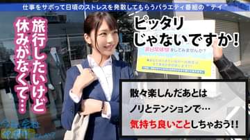 【テーマ】今日1日だけ会社を休んで、『行きたかった場所』に行く非日常体験をしてみませんか?あなたの行きたい場所への旅費は、全て番組が負担します!そして最後はしれっとセックスを目指す企画。本日は錦糸町駅付近にてターゲットを探します!何人かに声を掛けたところでスーツの可愛らしいお姉さんが足を止めてくれました!企画の趣旨を説明して早速職場に休みの連絡をしてもらい”ルンルン千葉の旅”にレッツGO!!女の子の名前は"ひまりちゃん"。不動産の営業のお仕事で、主にマンションの販売をしているそうです。会社はノルマをクリアできなかった際に上司から”給料泥棒”と罵られたりするという、なかなか過酷な環境のよう。加えて、現在付き合っている彼氏とは喧嘩中だそうで、何かとむしゃくしゃしており、会社をサボってくださったんだそう。牧場に到着すると、たくさんの動物たちにテンションUPのひまりちゃん。怖がりながらも餌やりをしたり、いちご狩りをしたり…とたくさんの自然や動物と触れ合います♪お昼の後は恒例のゲーム対決!パターゴルフで惨敗したひまりちゃんがセクシーなパンスト生脱ぎを披露してくださいます!ホテルに到着し、一同お酒で乾杯!本日の感想を聞いてみると、『またお仕事さぼってどこか行きたいです』と、大変満足していただけたご様子!お酒を交わしながら、恋愛の話に…。ひまりちゃんの彼氏との喧嘩の理由は彼氏の浮気が原因とのこと。ついでに1.2ヶ月ほど彼氏とセックスもしていないそうです。しかし、話を掘り下げるとひまりちゃんも彼氏以外の男性とワンナイトをしているという衝撃の事実が発覚!ひまりちゃん曰く、”セックスしても気持ちが入らなければ浮気にならない”とのことでしたw『グイグイ来られると断れない』と話すひまりちゃんの口に指を咥えさせると、抵抗もなくすんなりと受け入れ、そのまま濃厚なキスを交わし…なすがままに…。昼間の清楚なひまりちゃんからは想像できないほど卑猥に乱れよがりまくり!『彼氏とのセックスより気持ちよかった!』と、非常に満足していただけたご様子です!心身共にリフレッシュでき、有意義なサボりとなったようです♪