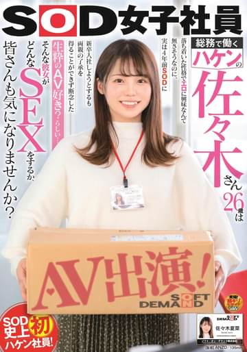 SOD女子社員 総務で働くハケンの佐々木さん26歳は落ち着いた性格でエロに興味なんて無さそうなのに、実は4年前SODに新卒入社しようとするも両親の了承を得ることができず断念した生粋のAV好き?らしい… そんな彼女がどんなSEXをするか、皆さんも気になりませんか?AV出演!佐々木夏菜