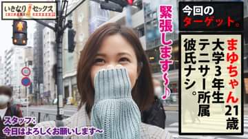 前振りなし!!ドラマなし!!前戯なし!!躊躇なし!!もちろんゴムなし!!とりあえず説明不要!!ややこしいコト一切なし!!何もかもが“いきなり”始まる!!今回のターゲットはスレンダー高スタイル美女まゆちゃん!!「イチャラブSEX希望です♥」と、自身のデビュー作の希望を語る彼女に…忍び寄る太マラ男が!!「えっ…!!もう…!!」と、激しく最初は戸惑う彼女!!その一瞬のスキを突いて…!!いきなりSEX!!開始で喘ぎ声に…!?生チン激ピストンで連続昇天!!