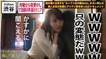 ○テーマ:夜の巷に出没するルックス&内面&etcがぶっ飛んだ素人女性の性態にグイグイ首を突っ込むドキュメンタリー○①今回は夜の中の渋谷が舞台!ラブホ街に喘ぎ声マニアがいるということで調査しました。②喘ぎ声マニアとはラブホの外で聞き耳を立てて、他人の喘ぎ声を聞くというマニアックな人である。③ラブホ街で一人怪しい女性を発見!!明らかに聞き耳を立てている彼女。ネット上ではかなり一部の人に人気である。取材協力のためにラブホの中へ大興奮の彼女。ドア越しに聞き耳を立てる。補聴器にまで持参して他人の喘ぎ声を聴いている。喘ぎ声で状況がある程度わかるという。風俗とかカップル同士とか分析できるらしい。聞きホテルはしごしている最後にSM専門ラブホへ。④SM独特の喘ぎ声を堪能しつつ、彼女自身の喘ぎ声はどうなのか?検証することに。電マで軽く刺激しただけでベットにくっきりおもらしするほど敏感体質。拘束椅子でハメると大洪水!敏感オマ●コはベットの上で涙目でイクイク連発!⑤喘ぎ声マニアは自分の喘ぎ声でも萌えていた。皆さんもラブホでは聞き耳にご注意を…。