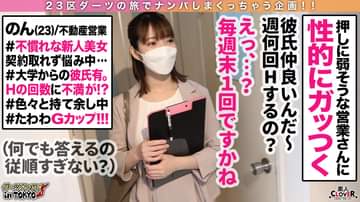 【神乳降臨!成約のために彼氏に内緒で生ハメ枕営業 in 四谷】コンプライアンスがばがば!?不動産に務めるフェロモンむんむん巨乳美女に成約をチラつかせて内見先でパイズリ&フェラ抜き口内射精♪勤務中なのに我慢できずに性欲解放ホテルイン→彼氏も仕事も忘れて快楽で上書き中出し性交2連発!!【ダーツナンパin Tokyo♯のん♯23歳♯不動産業♯38投目】