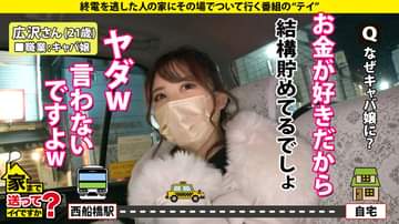 プレイ内容:手コキ、女が男の乳首を責める、ディープキス、フェラ、性器を乳首に擦り付ける、パイズリ、口射②ローターでオナニー、ディープキス、フェラ、お尻を撫でる、アナルを舐める、手マン、クンニ、立ちバック、乳首責め、胸を揉む、正常位、ポルチオ責め、騎乗位、女が男のアナルを舐める、バック、口射③背面座位、手マン、正常位、フェラ、背面騎乗位、対面座位、ぶっかけ、お掃除フェラ、④正常位、口射、お掃除フェラあらすじ:終電を逃した女性に「タクシー代を支払うので家に行ってイイですか?」という某番組のフリをし、声をかけ家まで行ってやっちゃおうという企画です。今回は西船橋駅周辺でゲットしたキャバクラ嬢のお姉さんの自宅へ伺います!