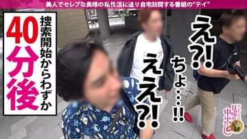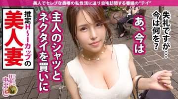 本日は丸の内、日比谷付近にてセレブな奥様を探します!ウロウロしていると、百貨店の前でスタイル抜群な美女を発見!早速インタビューのお願いをして、近くのカフェへと移動します!奥様のお名前は、箕島あずささん。現在29歳で普段はお医者様をされているそう。旦那様は50歳とかなり年上の方だそうで、お仕事は歯科医師をされているとのこと。お互い仕事が忙しいこともあり、最近はあまり一緒に過ごす時間は取れていないそう。同じベッドで眠るのも時々というような状態なので、当然夜の営みもご無沙汰。旦那様は性に淡白な方らしいのですが、知らない香水の香りを漂わせていたり、スーツに化粧品のラメをつけていたり…と浮気を疑ってしまうようなことが時々あるようです。インタビューが一区切りついたところで、あずささんのお家へと移動。赤裸々話で開放的になったあずささんの肩を抱き寄せ、唇を重ねると、久しぶりの甘いキスでエッチなスイッチが入ってしまいます。パイパンま◯こに巨根を挿入すると、気持ち良さそうな喘ぎ声をあげてよがるあずささん!大きな乳房を揺らして喘ぐあずささんの膣奥を激しく突き上げ、中出しフィニッシュ!!まだまだ満足できない二人は絶頂の回数を重ねるごとにヒートアップ!!何度も絶頂と射精を繰り返し、濃密なセックスを繰り広げるのでした!!!