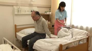 NOと言えない老人介護ヘルパーさん!向かいのベッドに別のおじいちゃんとヘルパーさんがいるのに愛撫にカラダはその気になってしまった熟女ヘルパーさん!おじいちゃんのガチガチチ〇ポに全身痙攣させて絶頂イキを繰り返す中出しSEX!