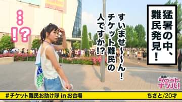 今回の企画はイベント会場に出没するチケット難民(当日現地でチケットを入手しようと会場に来る人達)をターゲットにお目当てのチケットをエサにインタビュー撮影を了承してもらい別場所へ移動、チケットを譲ることを条件に普通のお願いからエッチなお願い、果てはセックスまでお願いしてしまおうとする企画♪今回スタッフが訪れたのはアイドルグループが出演するフェス会場、最高気温40度超えの真夏日からか捜索は難航…会場をくまなく捜索しなんとか発見!!しかもアイドル級の美女という最高のチケット難民の捕獲に成功!!早速インタビュールームへ移動することに、今回ヒットしたのは声優アイドルオタのちさとちゃん(20)。顔も身体も全てが美しいアイスクリーム屋で働く美少女!!ファッションチェックや彼氏の似顔絵を書いてもらいインタビューは終了かと思いきや、日焼け止めクリームを塗るのをお手伝いすることに!!最初は背中だけだった手の動きは乳首→お尻→マ○コとドンドンHな場所に移動、ちさとちゃんも卑猥な声を漏らし始める♪パンツを脱がすとマ○コはびちょびちょ状態に!!激しいベロチューから全身をレロレロ舐めまわしてあげると彼女は何かを欲しがるエロ顔へと変貌♪極太チ○コをしゃぶり、キン○マまで美味しそうに舐めてくる。ヤルならお風呂に入りたいと言うちさとちゃんを無理やりベッドに押し倒しバックから激しく●す!!シャワールームに移動してもSEXは続き、体位を変えながら激しくピストンを繰り返す!!部屋に引き返してもまだまだ終わらない!!椅子の上→床→ベッドと場所を変えながら永遠と続くハードファックに半狂乱となりながらライブグッズを振り回す彼女の姿に興奮が止まらない!!!