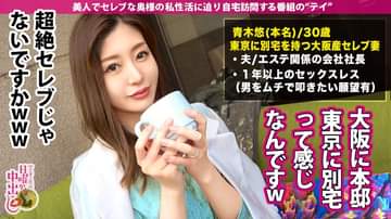 本日、代官山で出会った奥様は、青木ゆいさん、ご結婚6年目の奥様です。旦那様のお仕事はエステ関係とのこと。普段は大阪にお住まいだそうですが、明日の友達の結婚式のために東京に滞在されているそうです。そして、ここ代官山に別宅があるとのこと…これはかなりセレブな予感!そんな奥様にズバリ夜の生活について尋ねると、旦那様とは1年以上セックスレスとのこと。なんでも旦那さんが早漏気味な為、ゆいさんが満足できず、セックスに対してネガティブになってしまったそうです。他に彼氏は作らないのか聞いてみると、良い人がいれば…と満更でもなさそう。理想のセックスのお相手ができた場合にしてみたいことを聞いてみると、”男性を鞭とかで叩いてみたい”というびっくりなお言葉が返ってきました。インタビューもそこそこに、ご自宅訪問をお願いしてみると、すんなりOKをいただけたので早速移動します!お部屋にお邪魔して暫くするとM男が到着。早速四つん這いにさせて鞭で背中やお尻を嬉しそうに叩きつける奥様。M男が苦悶の声を上げる度、『ウフフフ』と嬉しそうに笑いながらSMプレイを楽しみます。M男いじめで発情した奥さんに愛撫を開始すると、まったく抵抗もせずになすがままに感じ始めてしまいます…どうやら貞操観念のゆるい奥様のようです。パンティーを脱がせると真っ白な形のいいお尻があらわに。おま○こに指を挿入してかき混ぜれば、いやらしい喘ぎ声を漏らしてよがります。早漏のご主人とは違い、タフな男優とのセックスで大満足な奥様。M男の男根を咥えながら男優にバックで突かれる3P。フェラや手コキでM男を発射させると、再び1対1で男優とセックス開始。家のいたるところで激しいセックスをする二人!最後は濃厚なザーメンを膣内に発射!!!鞭打ちで大興奮なドS奥様は中出しセックスでご満悦なご様子でした。