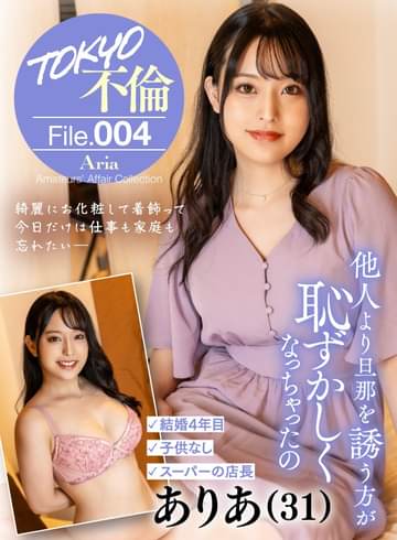 ありあは結婚前は趣味の音楽を通じて、夜な夜なライブ鑑賞によく出かけていた。レコード会社への就職を目指していた時期もあった。だが就活に失敗し、妥協もあって勤め始めた大手スーパーで今の旦那と出会い、趣味の時間も遠ざかっていった。旦那が体調を崩し、勤務先で店長となったありあは一人で家計を支えることに。もちろん、ストレスがたまらないはずがない。夜遊びなんていつぶりだろう…。久しぶりに夜の街に繰り出したありあは、緊張で強張った様子で待ち合わせに現れた。食事中もぎこちなさが抜けないありあだったが、ホテルに入り音琴体を重ねると、若かりし日のような生き生きとした笑顔を取り戻していった。