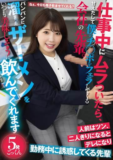 仕事中にムラついたら、甘えだして僕のチ〇ポをフェラしてくる会社の先輩。パンパンに溜まったザーメンをいつも美味しそうに飲んでくれます