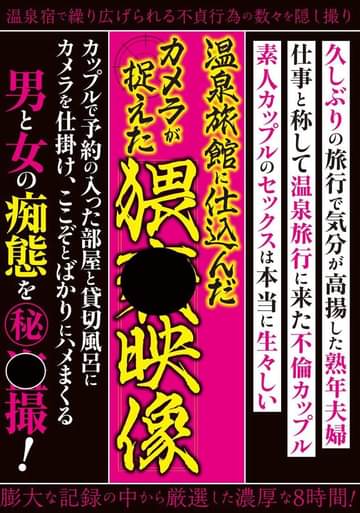 温泉旅館の主人が仕掛けたカメラに収められていた、余りにも生々しい素人カップル6組のセックスを余す事無く収めた8時間!まさかカメラが仕掛けられているとは知らずにハメまくる熟年カップルのセックスを収めた映像を温泉宿の主人が流出させた激ヤバ映像の数々