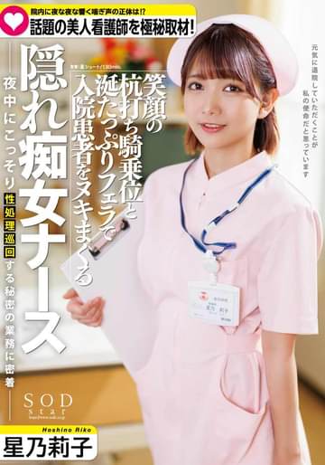 笑顔で患者を誘惑して性処理してくれる天使のようなナースがいるらしい…。今回は、巷で話題になっている、痴女看護師の星乃さんに密着取材を敢行!3日間の取材で撮れた映像では、担当する患者を夜な夜なフェラヌキ奉仕したり、翌日退院する患者と快気祝いセックスをしたり、やりたい放題!その一部始終をご覧ください。