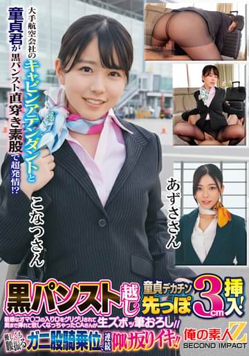 大手航空会社のキャビンアテンダントと童貞君が黒パンスト直穿き素股で超発情!?黒パンスト越しの童貞デカチン先っぽ3cm挿入!敏感なオマ○コの入り口をグリグリされて奥まで挿れて欲しくなっちゃったCAさんが生ズボッ筆おろし//優しくも腰振るガニ股騎乗位で連続仰け反りイキ!!こなつさん あずささん
