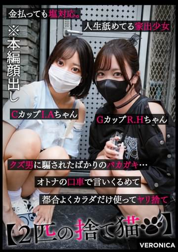 金払っても塩対応。人生舐めてる家出少女におじさんが社会の厳しさを叩き込む。ホテル街に二人組の可愛い子達を発見。そこに男が一人合流し三人でホテルへ入っていった。数分も経たず男が一人でホテルから出てきて、左手に持った可愛らしい財布の中身を確認したのち足早にその場を離れていく。すぐに先程の二人の女の子達がホテルから出てきて男を追いかける。恐らく財布を盗まれたのであろう。暫くすると彼女達が戻ってきて地べたに座りうなだれる。男を見失ったようだ。そんな二人に声をかけ、イイコトさせてくれたら今日止まる場所の確保とお金をあげると提案するとホイホイとついてきたwホテルに到着して早速楽しませてもらおうかと思ったら、二人とも明らかに不満そうな顔。こっちは金払ってんだから少しは営業スマイルでもしたらどうだ!とも思いながら、この苛立ちをSEXにぶつけていくことを決心!おじさんの巨チンを二人同時に舐めさせ、巨乳ちゃんのツルツルま○こに挿入‼若々しいキツキツなま○こは挿れた瞬間に誤射してしまいそうなくらい気持ちいい。その後、もう一方の美尻ちゃんに後ろから挿入。この子は特にナマイキだったので激しくガン突きしまくる‼ここからおじさんの行為がさらにエスカレートしていく…【2匹の捨て猫】R.H.B:96W:68H:99/I.A.B:80W:56H:83※この作品は成人にコスプレをさせています。※この作品の出演者は全て19歳以上の成人です。(All performers in this work are adults over the age of 19.)