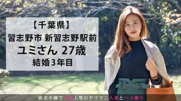 この作品は、色気溢れる甘美な淑女が魅せるリアルドキュメンタリー作品である。【Prolog】本日は、工場や倉庫と共存するベッドタウン、新習志野にやって来ました。快晴の空の下、待っていたのはユミさんです。普段はネイリストとして働き、旦那さんは会社を経営している所謂、社長夫人です。普段、旦那さんがユミさんに友人を可愛い可愛いと言っているのがムカついていると話す彼女、私の事だけ見て欲しいという割にはちゃっかり奥様はAV出演ですw【Scene1】早速ホテルに移動してAV鑑賞をしながらご飯を食べた後はお待ちかねの本番です。ゆっくり服を脱がしておっぱいを触ればビンビンに勃って主張している乳首。それを優しく口に含めば、気持ちよさそうに甘い声を漏らし感じている様です。【Scene2】ぐちょぐちょに濡れたおま●こを指でかき混ぜれば、お尻をヒクヒクさせて更に感度が上がっていくユミさん。男優のち●ぽを差し出せば、舌と手を上手に使い、竿や玉を丁寧にご奉仕してくれます。下からペロペロと舐める姿はエロさの中にどこか可愛さもあってユミさんの魅力に釘付けになってしまうことでしょう。【Scene3】そのままユミさんを押し倒し、正常位でゆっくり挿入していけば、腰を動かす度にイイところに当たる様で、「気持ちいい‥」と喘ぎながらビクビクと反応しイきそうになっているので、更に奥深く繋がり徐々に腰の動きを早めていけば愛液をどんどん溢れさせてセックスに夢中になっていくユミさん。【Epilogue】何度も体位を変えて時間いっぱいデカ●ンを堪能し満足気な表情のユリさんは何食わぬ顔で旦那が待つ自宅へと帰っていくのでした‥。