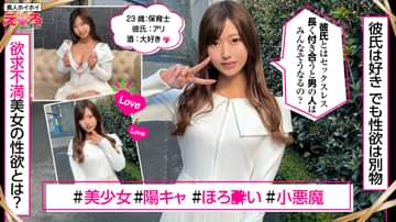 #えろきゅん#美少女 #あざと可愛い #酒好き #SEXレス#欲求不満 #陽キャ #コスプレ #マッチングアプリ幼稚園の●生をしている美少女、あゆちゃん 23歳。現在の彼氏と付き合って3年。倦怠期MAXのSEXレス!! 今日は新しい出会いにワクワクしていたらしい。初めて会ったのに、しかもこんな公共の場所で自分の性癖やHな話をしてくれる正直でエロい女のコです。この後も空いてるらしく居酒屋に誘うもOK!! 二人の距離はアルコールによって更に縮まりホテルへ。ホテルでは買ってきたお酒をグビグビ飲みながら…。何カップか当てられたら、服、脱いでもいいよ♪ って、もうヤル気満々なんですね 笑。自らキスをしてきたり、チンチン見せてとニヤニヤしながら言ってきたり、色んな意味で動画の全部。目が離せません!! 責めても、責められてもエロい。すべてにおいて探究心旺盛でエッチな彼女との2回戦。色っぽい視線。声色、揺れる美巨乳Fカップ。全部たまらなくエッチで愛おしい、あゆちゃんなのでした~♪